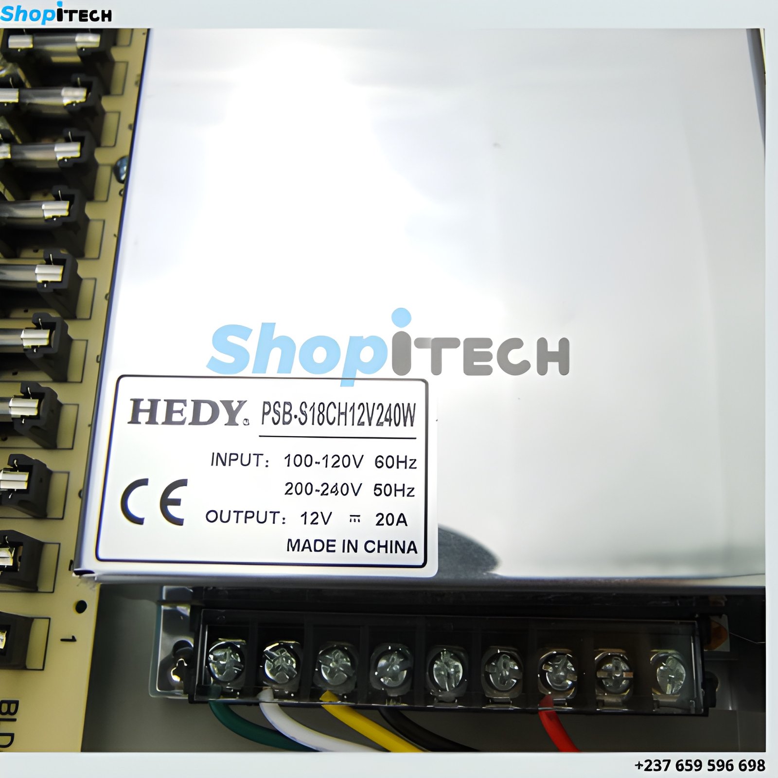 Alimentez efficacement plusieurs caméras de sécurité avec le boîtier d’alimentation CCTV 12V 20A DC (120W). Conçu pour les systèmes de vidéosurveillance professionnels, il permet d’alimenter jusqu’à 18 caméras ou dispositifs simultanément à partir d’une seule source stable et sécurisée.