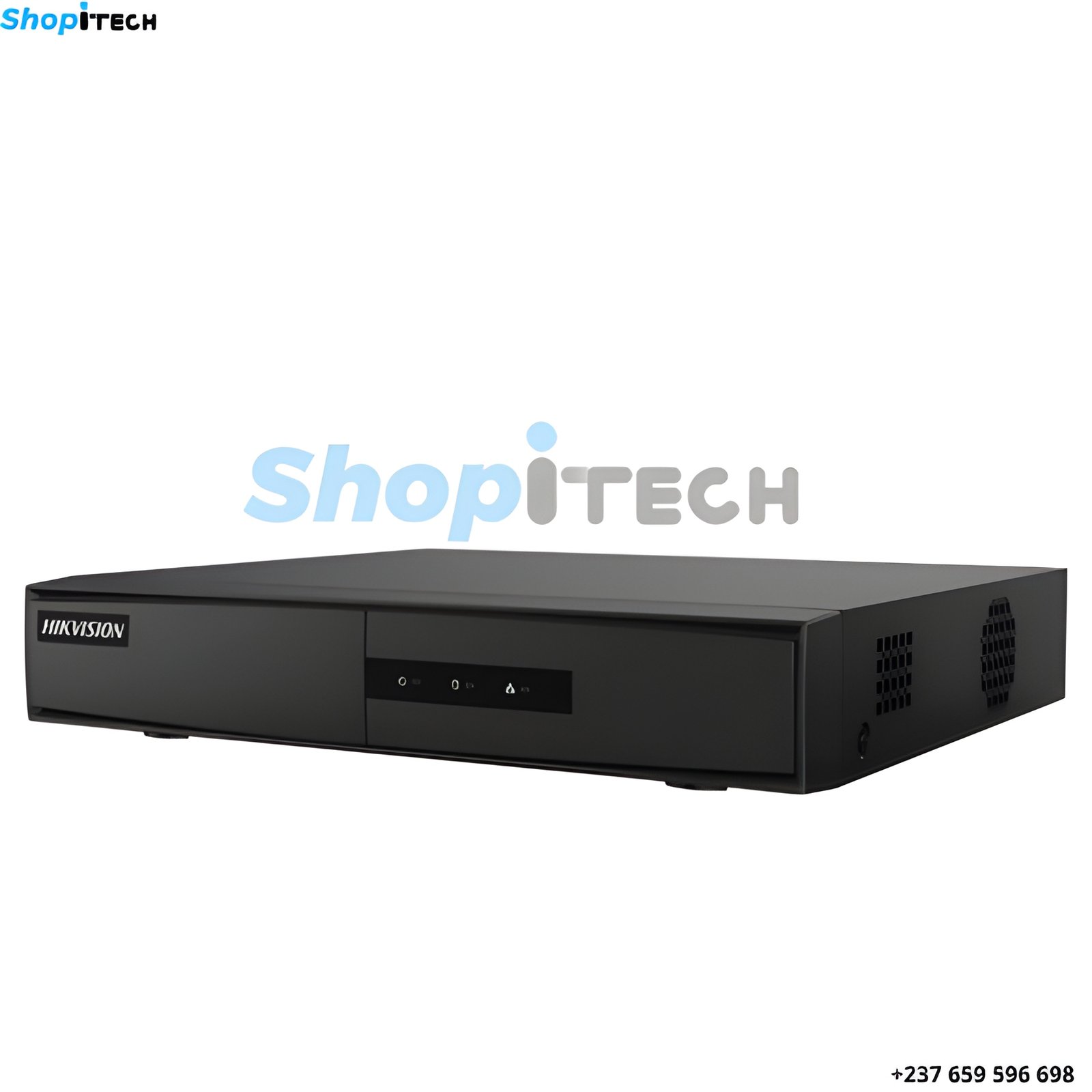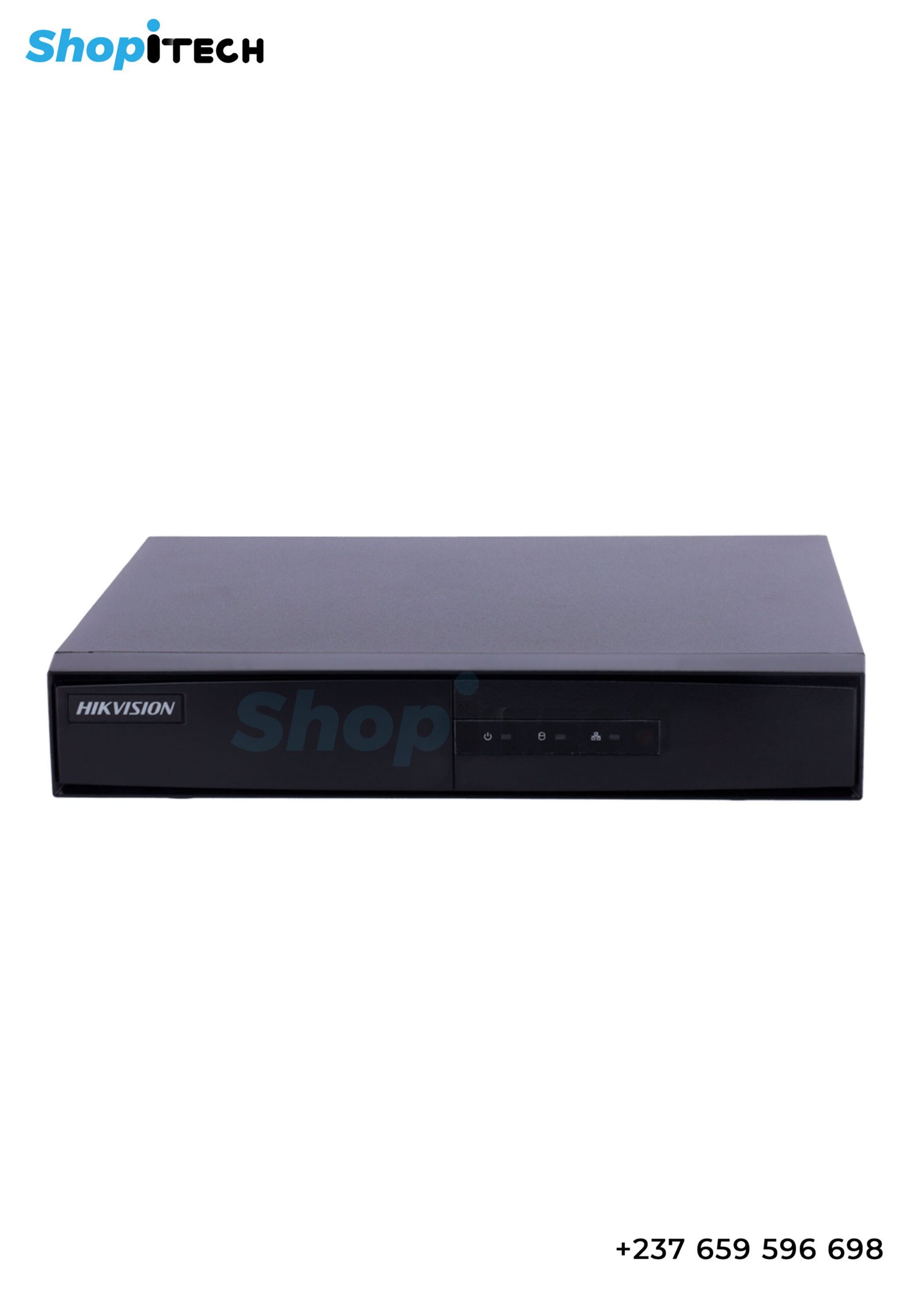Mini NVR DS-7104NI-Q1 (D) à 4 canaux avec ports PoE intégrés pour une installation simple et rapide de caméras IP, idéal pour petites installations de vidéosurveillance.