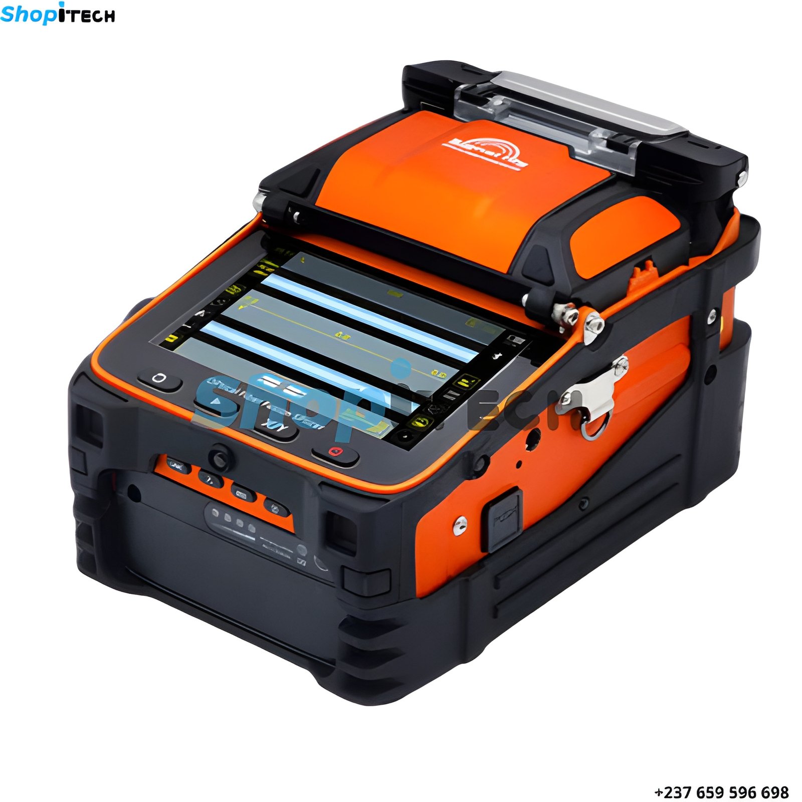 Soudeuse de fibre optique AI-9 conçue pour le soudage rapide et précis des fibres optiques avec alignement automatique, écran intégré et autonomie élevée, parfaite pour les techniciens télécom et installations FTTH.